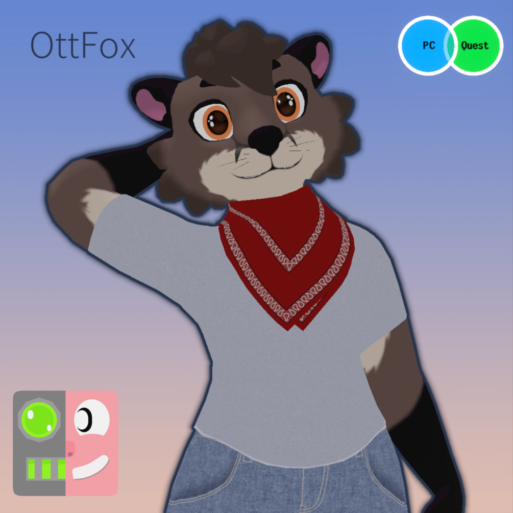 Looking for an avatar that's a little bit different? Meet The OttFox! We wanted to create something that captures the playful spirit of an otter and the clever charm of a fox. This avatar is our passion project, built from the ground up to be the perfect base for you to create a character that feels truly yours. Right out of the box, you get a unique, androgynous look that you can take in any direction. Want a more foxy snoot and big, fluffy ears? Go for it. Feeling more like a sleek river otter today? Adjust the sliders. With over 37 customization sliders and toggles, you can tweak everything from body proportions to cheek fluff. We’ve even included toggles and sliders to easily create a more masculine or feminine look. We know expression is everything in VRChat. That's why The OttFox comes with full face and eye tracking using unified expressions, so your personality can really shine through. It also comes with boop and pat reactions out of the box!